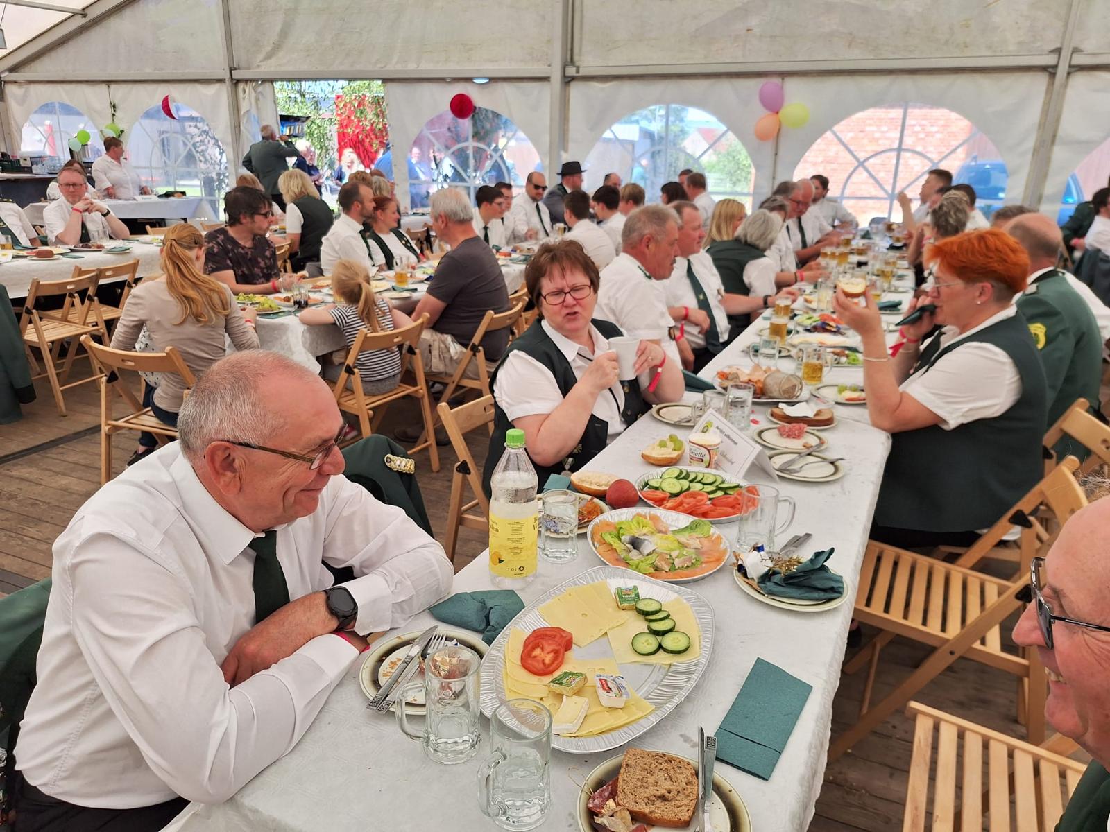 Im Anschluss ging es zum Katerfrühstück im Festzelt. Hier sorgte der Einkaufsbummler aus Hötensleben mit einem reichhaltigen Frühstücksbuffet für das leibliche Wohl der Gäste.